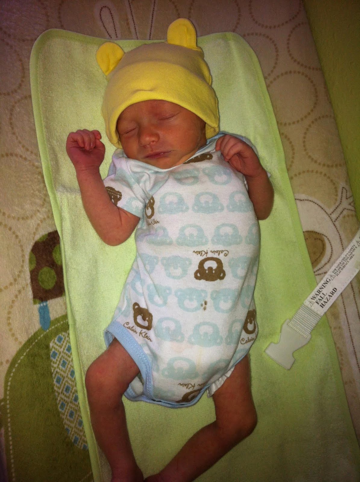 "Today I was crying because I was hungry and they stuck this poor substitute for mama in my mouth. I gotta' say, either this is the biggest honkin' pacifier in existence, or I'm just the cutest little peanut ever. Since Virgos are known to be modest I'll let you decide."